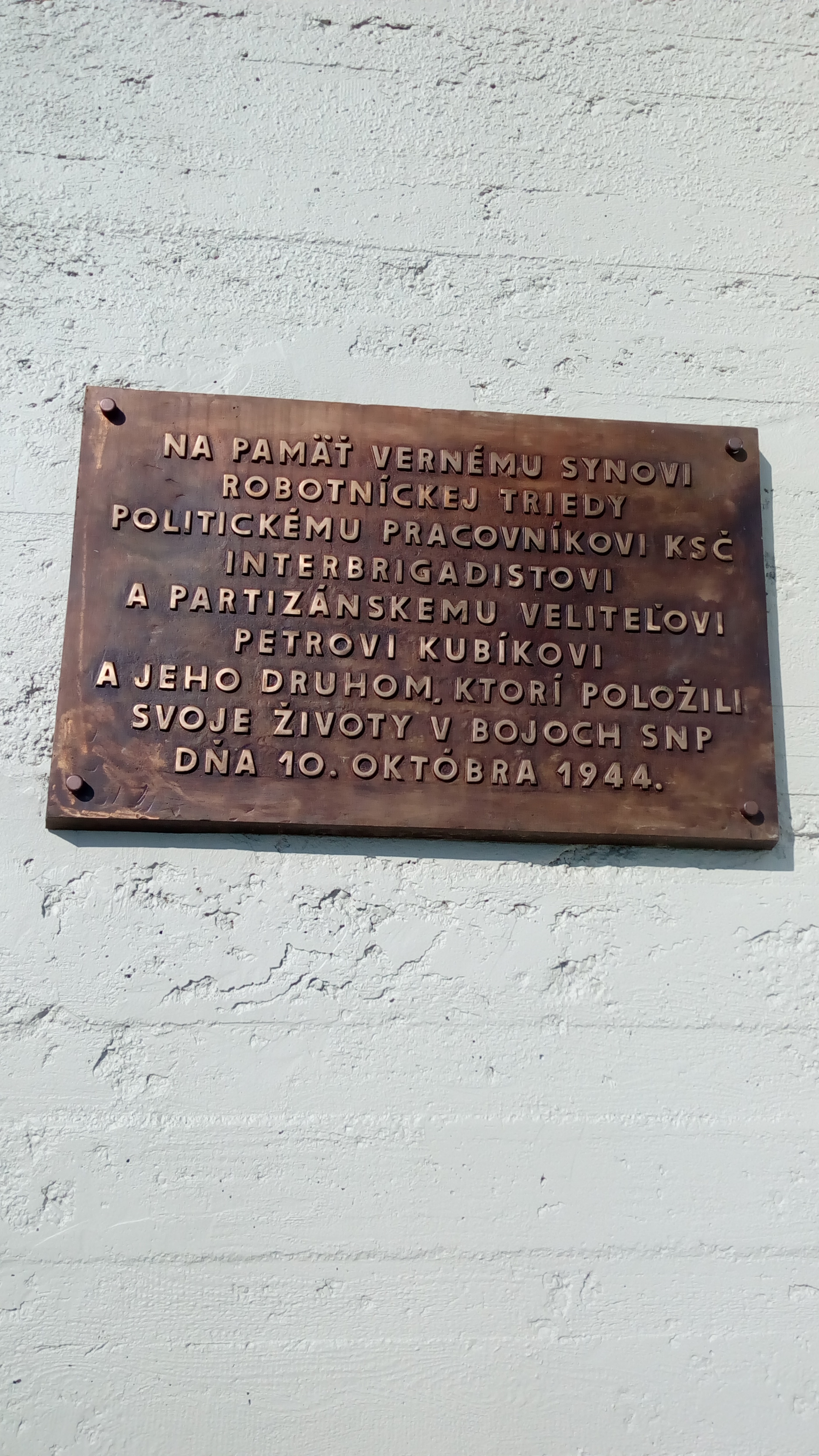 | Doplňujúce údaje: | Pamätník odhalený v 10/1967, autor akad.soch. J.V. Hučko, stav. časť Ing. arch. M. Dzurenka. Kovovo-betónová socha, pamätná tabuľa,terasovité riešenie, betónový podstavec bez dlažby. |